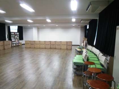 バスケットボール部が整理してくれ、管理作業員さんと図書館補助員コーディネータさんが本棚を設置してくださったところに、今日は図書館補助員さんが、本を収納してくれました。机はビニールがまだ巻かれていますが、一歩ずつ出来上がっていきます!