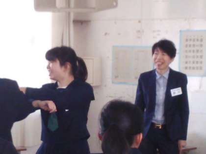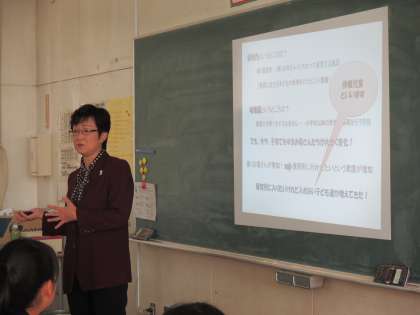 ・中野中学の卒業生であり、元中学の国語の先生でもある、教育研修会社の女性社長の講演風景です。