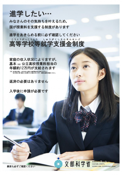 高等学校等就学支援金制度の中学生及び保護者への周知について 〜文部科学省〜