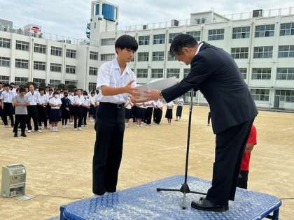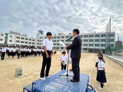吹奏楽部と陸上部の表彰が行われました