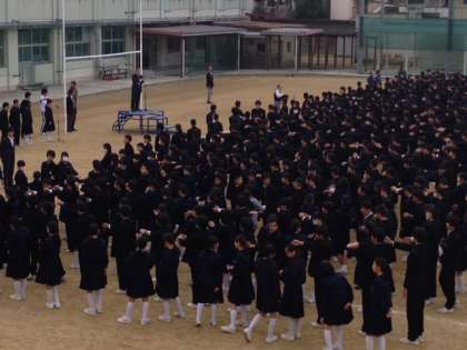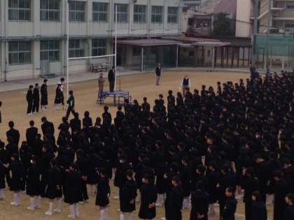 12月15日(火)朝、全校集会を行いました。少林寺拳法部の表彰あり、校長先生のお話では、一部の生徒による自転車通学を止めることと違法駐輪によって近隣の方が大変困っていることを話されました。