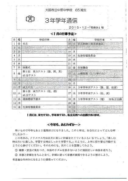 いよいよ学生生活も後わずか 1月になりますと、出願・入試など忙しい毎日とまなります。体調を整えてまいりましょう。