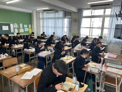 学期最後のメニューは、鶏肉と野菜の煮物、じゃこ豆、かぶのゆず風味でした