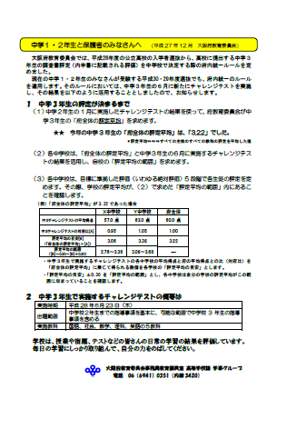 この6月のチャレンジテストは、今年度・全国学力学習状況調査において各中学の評定の範囲を設定したものに代わるものです。