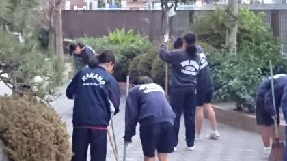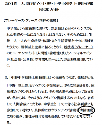 今年、陸上部では指導指針が制定され、その中の一つとして、人間育成のためにボランティア活動や清掃活動に取り組むことが記されています。陸上部は、昨年秋より継続して早朝に清掃をしてくれています。