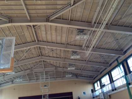 昨年の11月20日から始まりました体育館吊り天井工事が今日、終わり中学校の方へ引き渡されました。放課後から体育館が使えます。体育館使用のクラブのみんな、お待たせしました。思い存分、練習に励んでください。