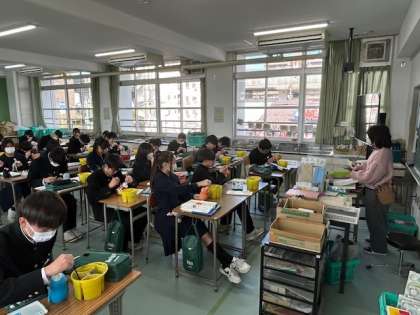 1年1組の数学、1年4組の技術、2年3組の美術の授業の様子です