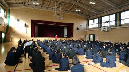 1月22日(金)1時間目 3年生は体育館でいよいよ来週に迫った出願の注意事項など、事前指導を受けました。みんな頑張って下さい!