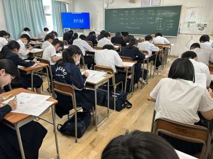 進級して初めての中間テスト。どの生徒も真剣に取り組む様子が見られました。自分の目標に向かって明日も頑張ってほしいと思います。