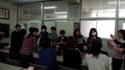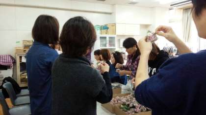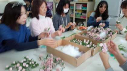 2月14日(日)PTAの皆さんがたくさん集まられ、卒業式に子どもがつけるコサージュdを作られました。