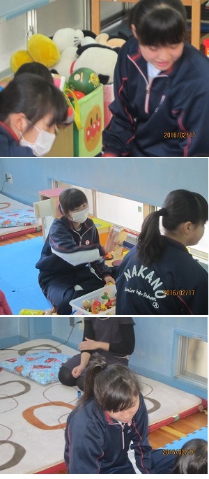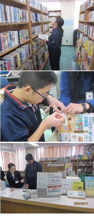 下の写真は、東住吉消防署、子育てプラザ、東住吉図書館で職場体験している様子です。