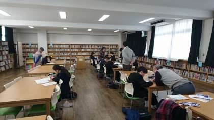 2月28日(日)今日は昨日と打って変わり、グラウンドではお父さんたちのソフトボール大会が開かれてにぎやかです。そんななかでも、図書室では元気アップのボランティアさんが学習を見てくださっています。子どもたちも一生懸命勉強しています。