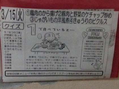 3月15日(火)の給食の献立は、