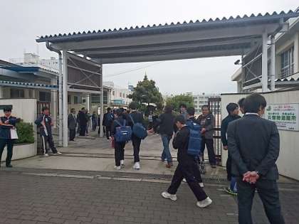 本日14日(木)より、初期指導の一環として登校は西門のみとし、身だしなみの確認をしています。「名札をつける」・「シャツをズボンに入れる」・「長い髪の毛はくくる」・「スカートの丈は標準に」等基本的なことができるようにという目的です。