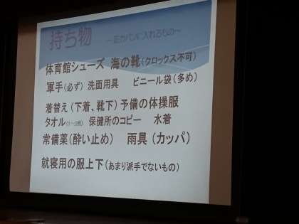 本日 4時間目に1年生は一泊移住の説明を受けました。