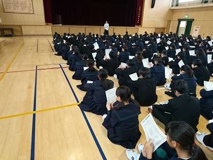 中野中学校では、火曜に全校集会 水曜1年生 木曜2年生 金曜3年生の学年集会があります。