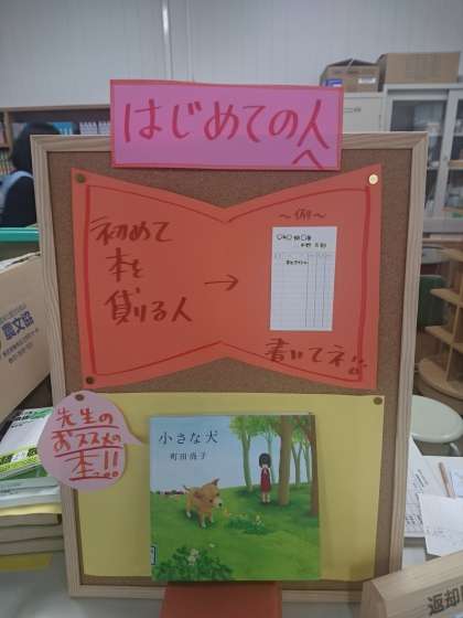 図書カードに自分の名前を書いておき、借りる図書の名前を記入して渡すのですよ♪