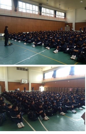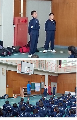 少年の家の体育室で入館式を行い、2日間お世話になります職員のみなさまに学年を代表して子どもたちがあいさつをしました。