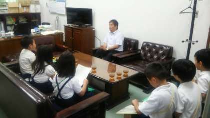 南百済小学校の2年生が「町たんけんインタビュー」ということで、中野中学校にやってきてくれました。「生徒は何人いますか?」「695人ですよ」「えー うちより多いな」と感想を述べながらしっかり聞いてくれました。