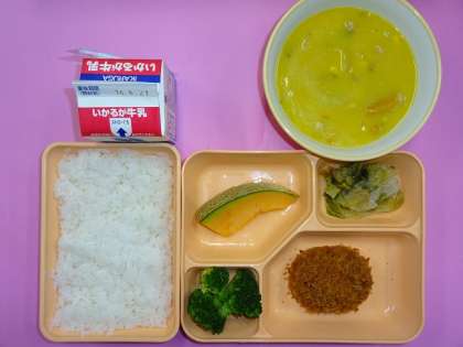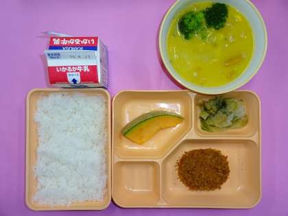 献立名 ・かぼちゃのクリームシチュー、ブロッコリー