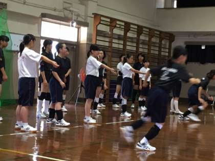 7月2日(土) 平野区のH中学校体育館をお借りして合同練習会を行いました。キャッチの時の足の運び方など、基本を中心に練習しました。
