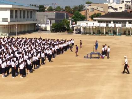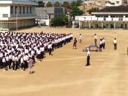 続いて、生徒会からは昨日、東住吉区役所へ行って、みなさんから集めました熊本震災の募金を区長に渡しました。この募金が震災で被害に遭われた方々のお役に立てれば嬉しいですと話がありました。