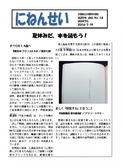 2年生学年通信『にねんせい』7月19日号を配布しています。
