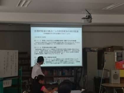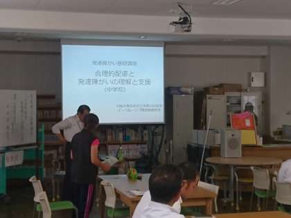 7月20日(水)11:00より図書室にて、市教委インクルーブ教育推進室の講師を招いて、特別支援教育の研修を受けました。本校は、今年度、特別支援の研究モデル校に指定されており、知識・技術の向上を図って参ります。