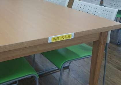 昨年、本棚を2つ寄贈いただいたのに続き、南百済地区の鉄板焼き『大和屋』様より、図書室の机とイスを寄贈いただきました。