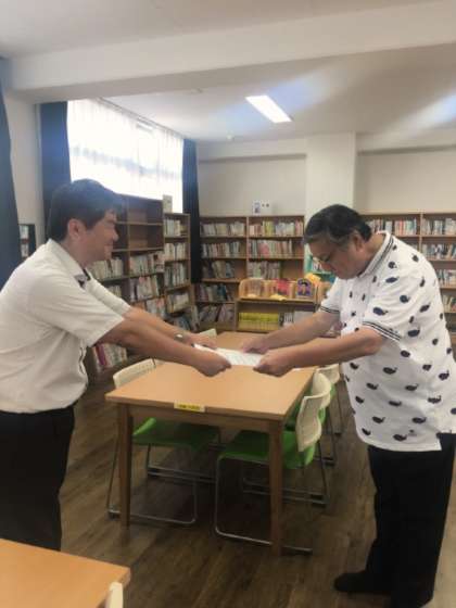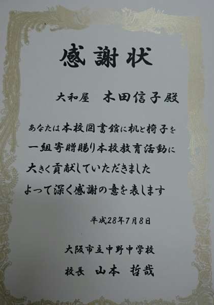 大和屋様より図書室の机とイスを寄贈いただきました。