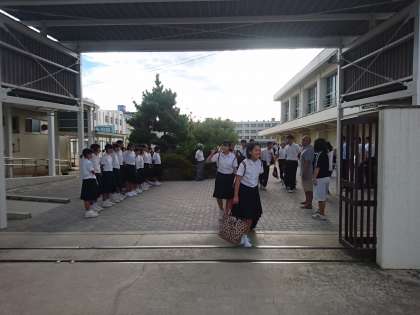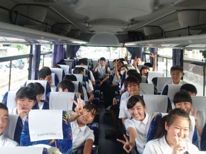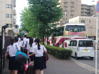 3年生は信州方面へバスで向かいます。出発を迎えてみんな、ソワソワ、ワクワク。