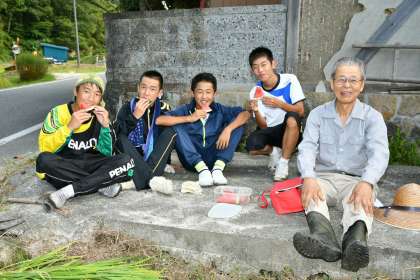 まずは、事前にお送りした手紙をもとに自己紹介、そして様々な収穫物のお手伝いをしたり、おいしいスイカをいただいたり♪
