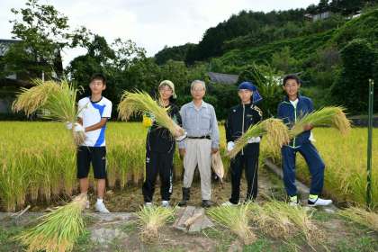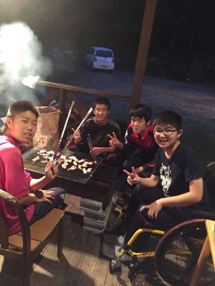 稲刈りのお手伝いをしたり、トウモロコシをほおばって、手打ちうどん作りをしながら、バーベキューをいただいて、そしてお風呂に入って夜はトランプ!とても楽しいひと時を過ごしています。