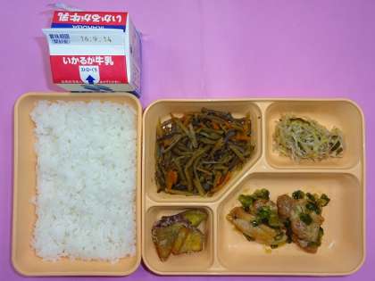 今日の給食では、でんぷんをまぶしてから揚げにし、塩をまぶしています。