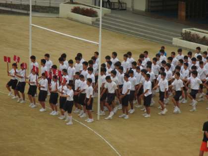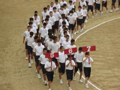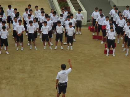 9月15日(木)の1・2時間目、3年生は運動場で体育大会学年練習の1回目を行っています。30日(金)の本番に向けて練習を重ねていきます。