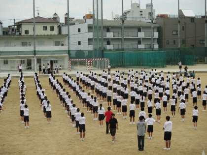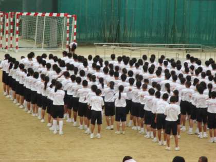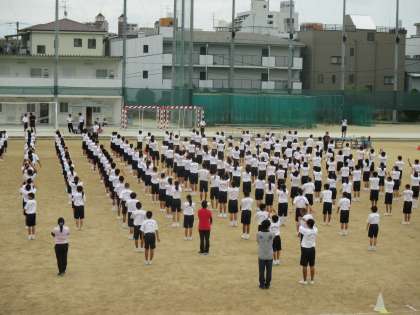 3・4時間目、2年生は運動場で体育大会学年練習を行いました。行進、ラジオ体操、校歌の練習を行いました。