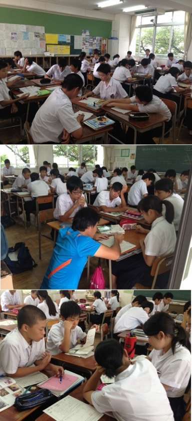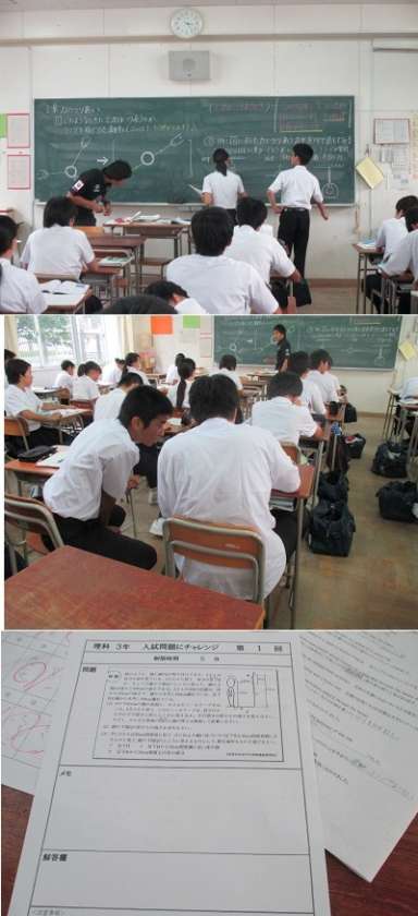 9月12日(月)から始まりました公開授業週間ですが、3年生の子どもたちはしっかりと勉強をしています。理科の時間では難しい入試問題に挑戦しています。個々で解いても解けないので、今日はヒントを与えて学習班で解いています。できた人は班の子に教え合っています。