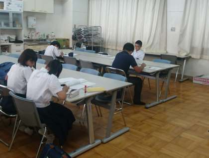 今日は、職員会議を図書室で行うため放課後自習室は、多目的教室で行なっています。黒田先生、途中から元気アップの皆さんも教えてくれました。
