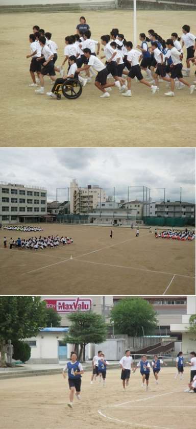 3年生は3・4時間目に体育大会第2回学年練習を行いました。写真は学年種目の全員リレーの練習をしているところです。