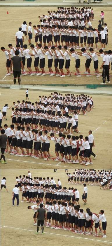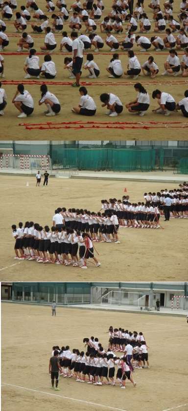 5・6時間目に2年生は体育大会学年練習を行いました。6時間目は学年種目のムカデ競走の練習をしました。