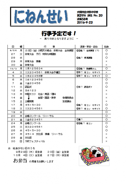 中学生活のまっただなか、折り返し地点の10月、実りの秋になりますように!!
