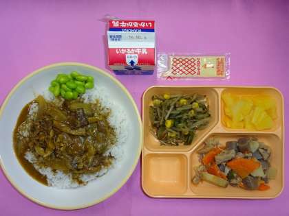 献立名 ・カレー丼、枝豆