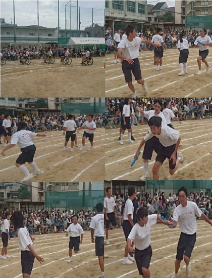 最後のプログラムは、みんなでバトンをつなぐ、中野中学名物、全員リレーです。