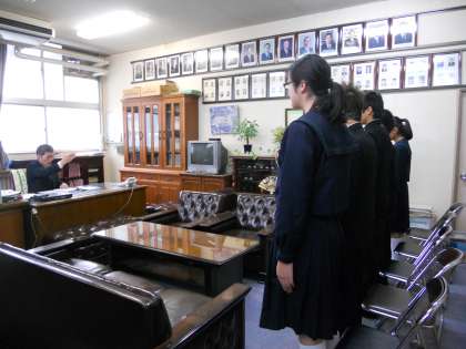 3年生では12月3日(火)より入試の面接の対策として校長面接を行っています。各クラス5人ずつ、2日に渡って面接しています。担任の先生方から事前指導をきっちりと受けているため、校長先生から「一人ひとり丁寧にしっかりと受け答えができている。服装もきちんと整えている。」とコメントをいただきました。