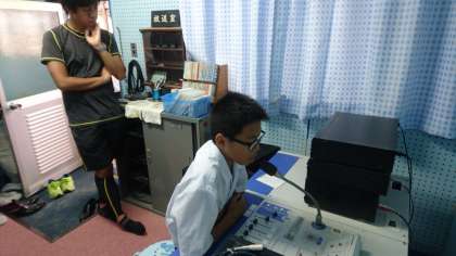 あいにく、グラウンド状態が悪く、放送による全校集会になりました。