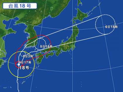 非常に強い台風18号が、5日お昼から夕方にかけて、大阪府にもっとも接近するという予報があります。