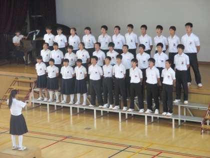 まずは全体で歌唱練習。そして4組をトップバッターに合唱コンクールが始まりました。