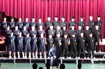 合唱コンクールにて、各学年最優秀クラスに輝いたクラスによる合唱がありました。