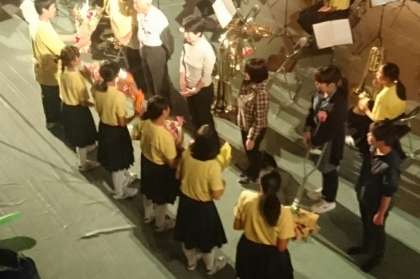 最後は、吹奏楽部の三年生が起立する中、代表の生徒が花束を渡し、これで吹奏楽部の3年生は、3年間のクラブ活動を終了することになりました。