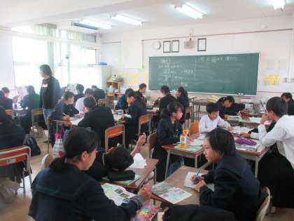 社会の中山先生は、「これから大阪を発展させるためにはどうしたらいいか」というテーマで、様々なデータの読み込みからグループ学習でみなで考える授業をしました。